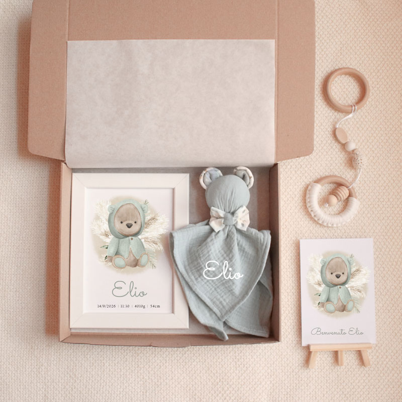 Un pacchetto adorabile e scelto con amore per un neonato è il regalo più bello che possiate fare a una giovane famiglia in occasione della nascita di un bambino. Ogni piccolo gesto di attenzione che una famiglia riceve in questo meraviglioso periodo è importante e rimane un ricordo prezioso per tutta la vita. Lasciate che i nostri dolci pacchetti per la nascita rendano più bello il giorno dei genitori orgogliosi. Tutti i nostri pacchetti vengono consegnati in una graziosa busta che contiene una scatolina con il vostro regalo, e i prodotti sono avvolti in carta regalo bianca, perché crediamo che la prima impressione in questo periodo magico della vita sia fondamentale.
