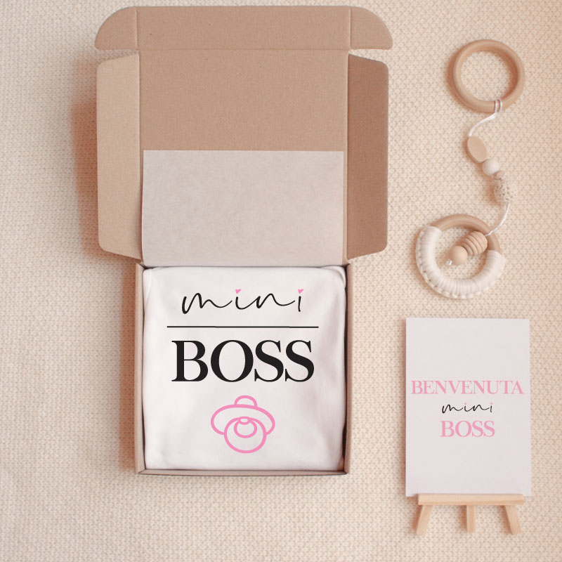 - body per bambini, taglia 56-62 (0-3 mesi), con la scritta “Mini boss”
